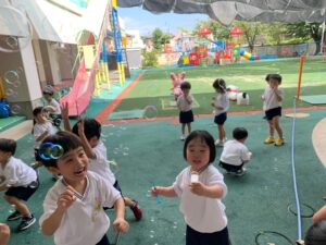 朝晩の涼しい風に秋の訪れを感じるようになりましたが、日中は暑い日が続きました。2学期も楽しい活動をたくさんしていきたいと思います。