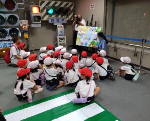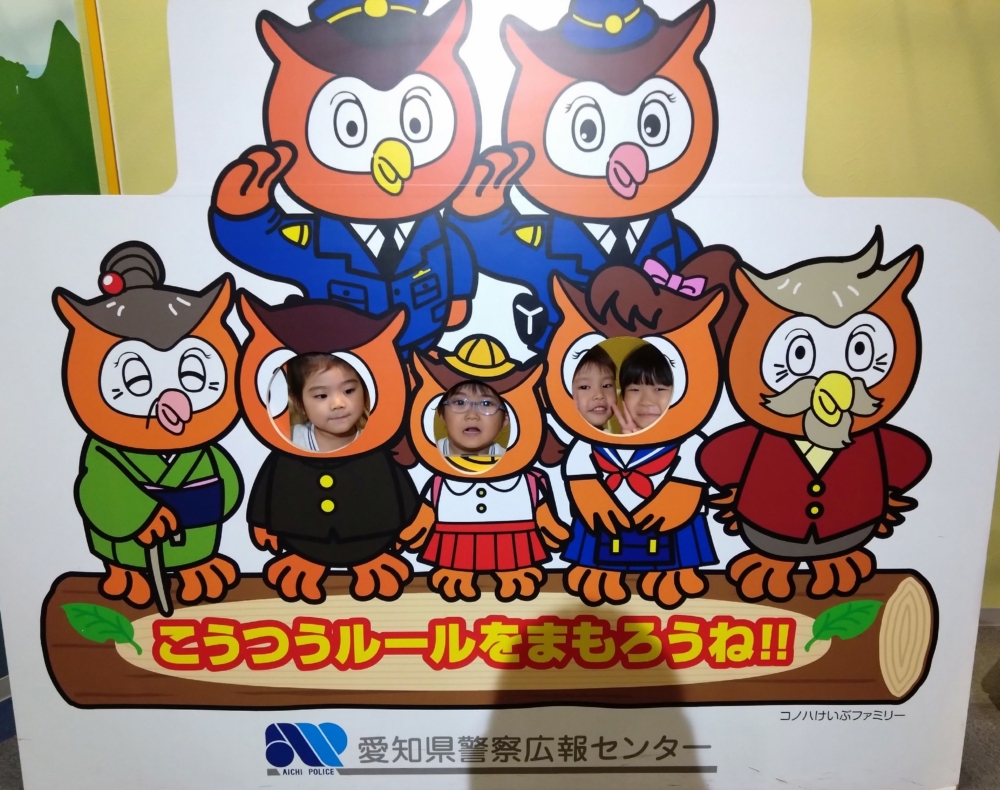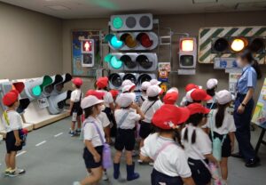 案内してくださった警察官の方や、すれ違う方に挨拶をする子どもたち。