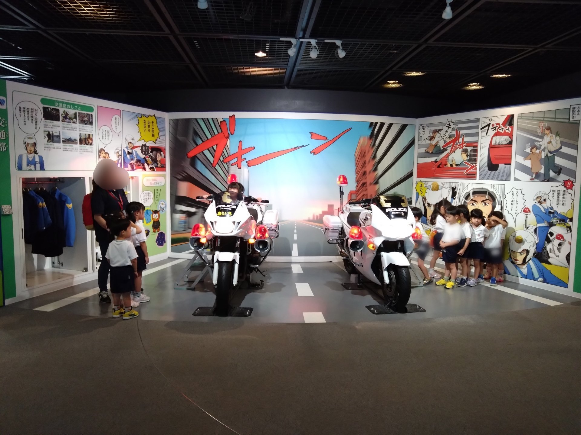 警察本部では、通信司令室や本物の信号を間近でみさせていただいたり、警察官の服を着て白バイクに乗ってみたり、たくさんの体験をさせていただきました。