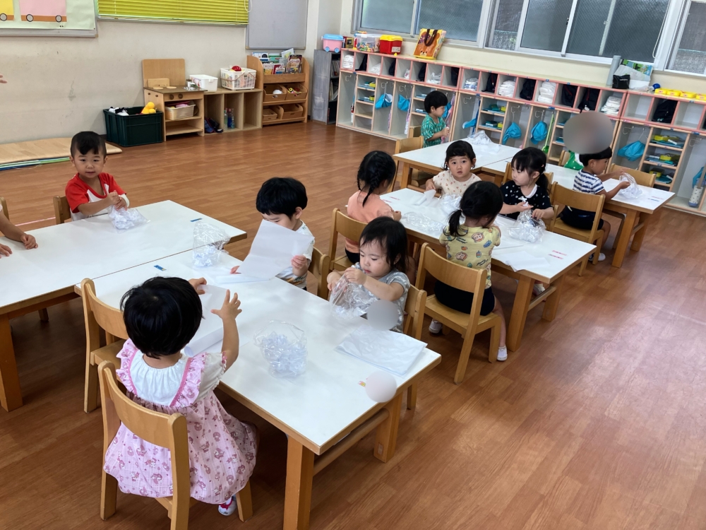 10月もさらにお友達が増え、どんどん賑やかなクラスになっています🥰ハロウィンの製作でおばけを作っている様子です。