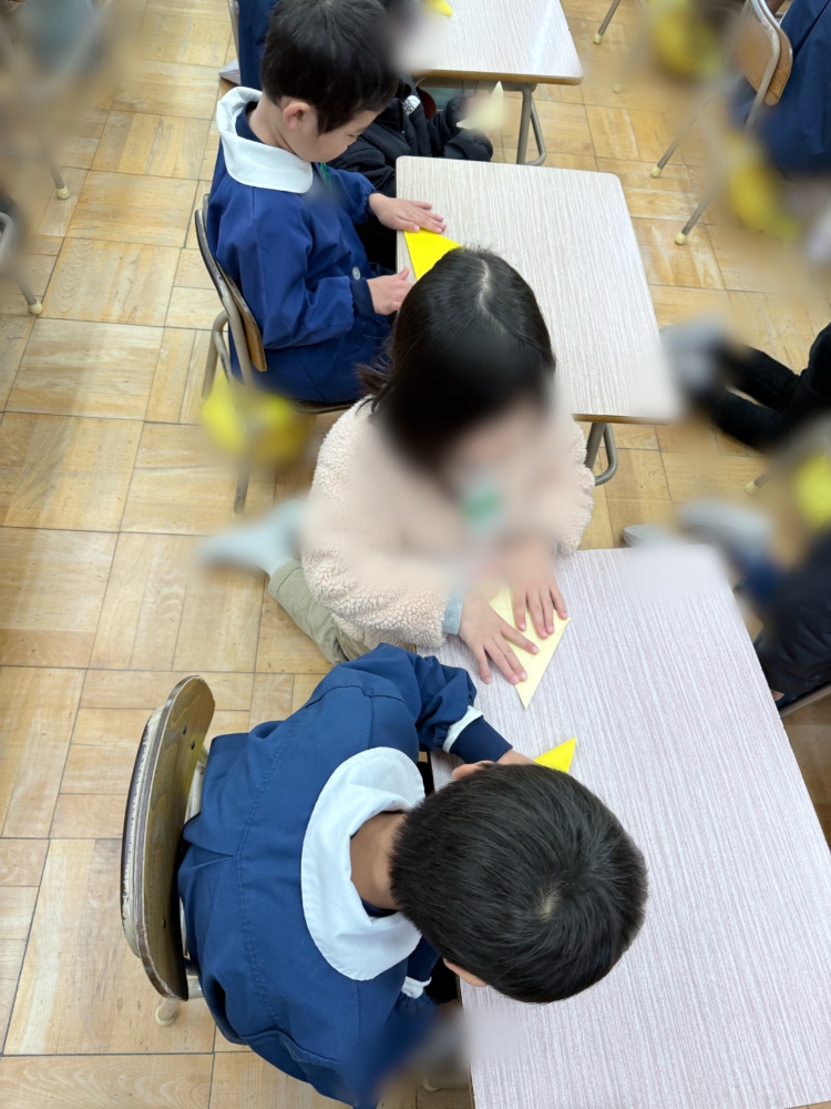 実際に教室へ入らせていただき、小学生のお兄さんお姉さんと折り紙を折ったり先生のお話を聞いたりしました✨
