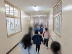 体育館ではみんなでじゃんけん列車をし、その後に学校内を探検させてもらいました😊
