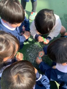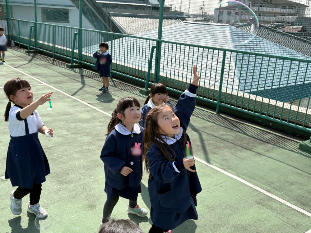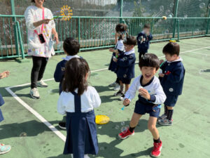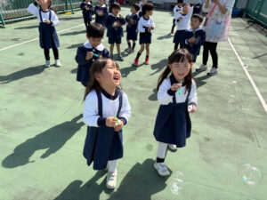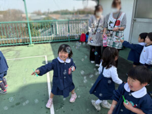 みんなでお弁当を食べた後はシャボン玉をして遊びました。