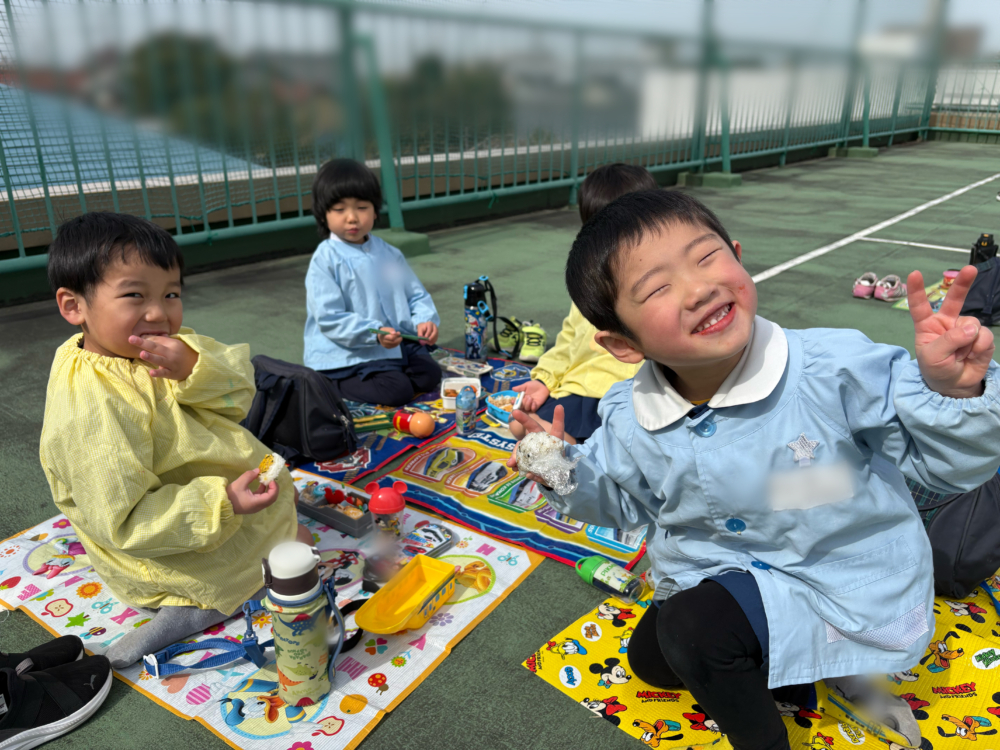 だんだんと暖かくなり、春の気配を感じるようになりました。 お天気が良かったので、お弁当を持って屋上におでかけ♫
