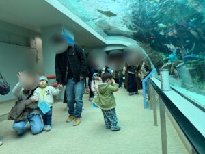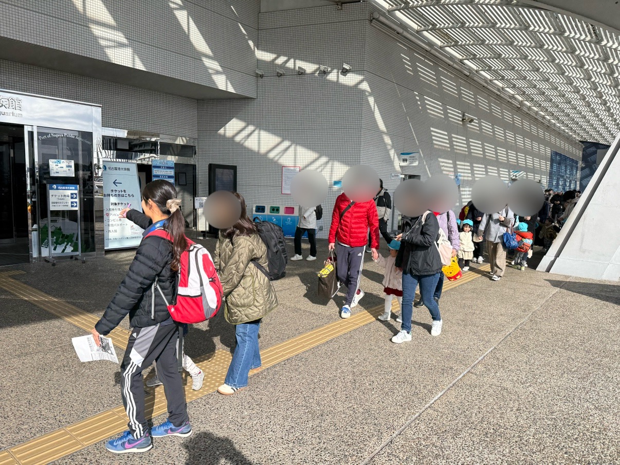 先日白組の親子遠足で名古屋港水族館へ行ってきました🐬この日をとっても楽しみにしていた白組さん❤️当日は暖かく遠足日和でした。おうちの人と手を繋いで出発です!