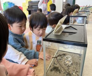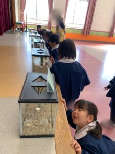 その後は、全クラス順番に遊戯室で色々な種類の虫を見せていただきました!